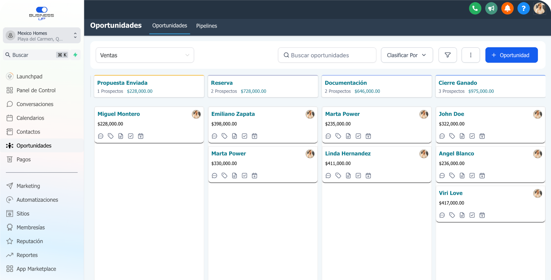 • Cerrar más ventas: Utiliza nuestro pipeline de ventas inmobiliario para visualizar el progreso de cada lead y tomar decisiones estratégicas para cerrar más oportunidades.